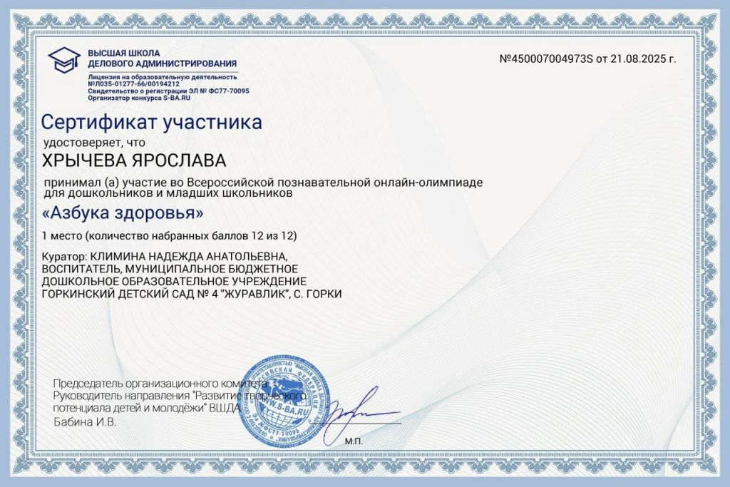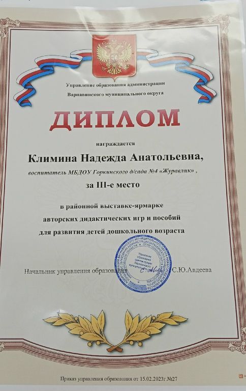 Присвоенная квалификация по диплому: воспитание детей дошкольного возрааста